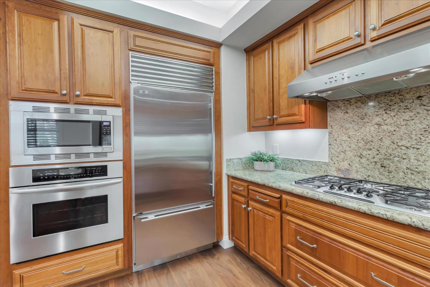 Welcome to the highly desired Woodmark at University Park. Located inside the private gates, the first floor unit sits on the rear side of the courtyard entrance. Upon entering the foyer leads to the elegant natural light-filled great room featuring high ceilings, hardwood floors, a spacious living area with fireplace flanked by built-in bookcases, dining area and library/office with custom cabinetry behind pocket doors. The kitchen features granite countertops, high-end stainless steel appliances, and bar-counter seating. Two ensuite bedrooms are upstairs, including the primary with a seating area and spacious bathroom with soaking tub, step-in shower, and custom, locking, walk-in closet. Set on a tree-lined street next to Heritage Park, within strolling distance to University Avenue, Farmers Market, Town and Country Village, Whole Foods, Stanford, and outstanding Palo Alto Schools. Two secured parking spaces, storage unit, and bike storage.